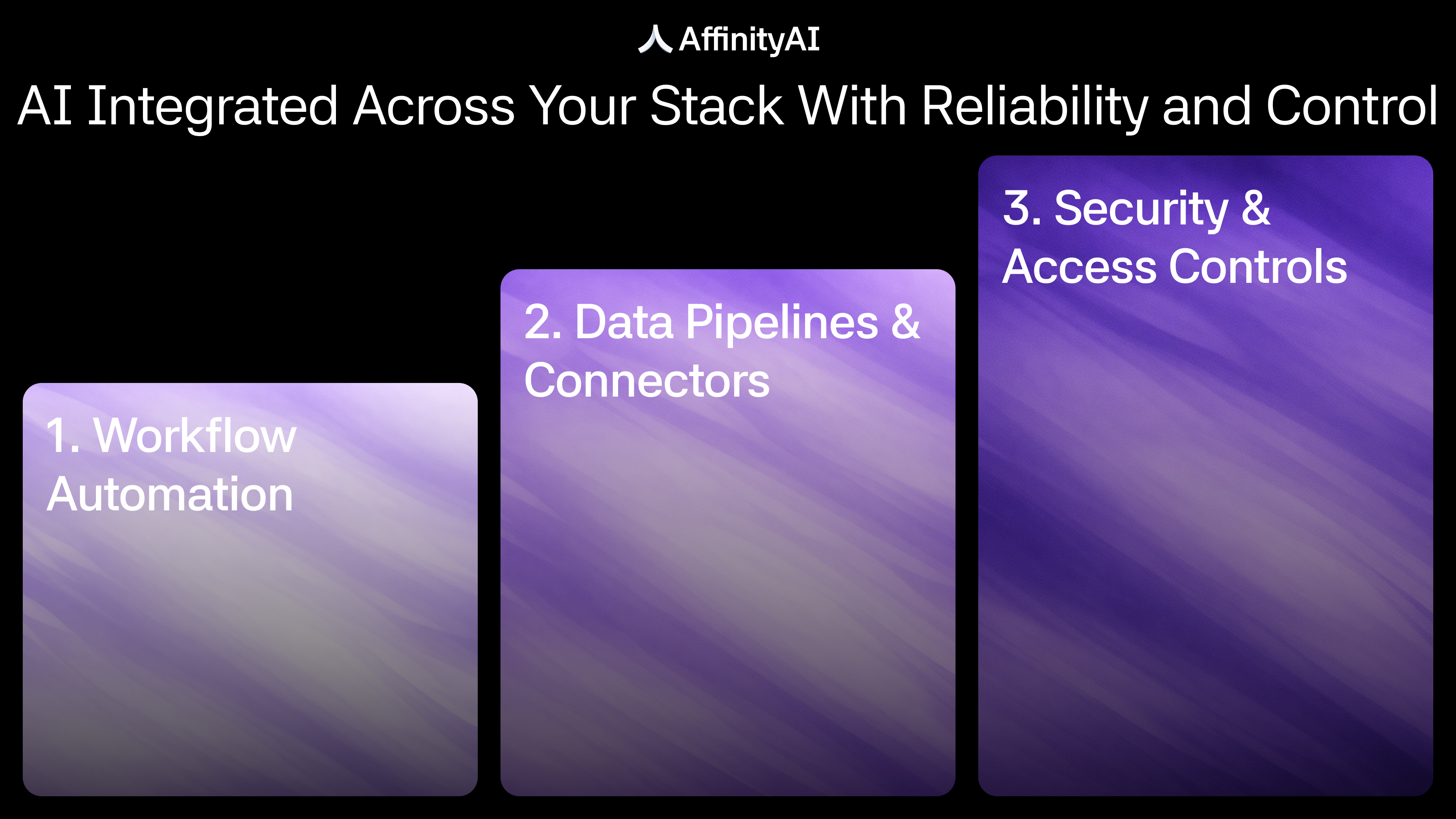 At AffinityAI, we deliver Enterprise AI Integration - AI integrated across your stack with reliability, security, and control. The goal isn’t “an AI tool.” The goal is measurable operational output inside your existing workflows.